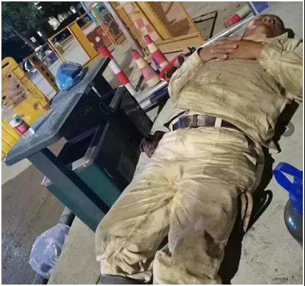 夜色中,有他们奋战的身影;高温下,也少不了他们奋斗的激情。在通宵施工碰接顺利完成后,工人随地一躺,开启“秒睡”模式。