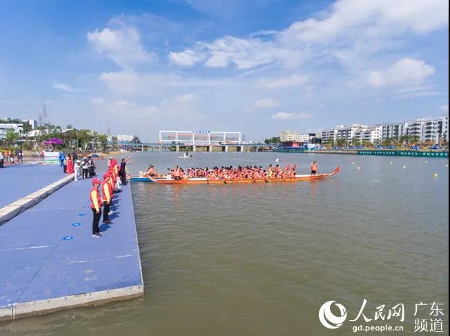 市民在治理后的茅洲河上划龙舟。深圳市水务局供图