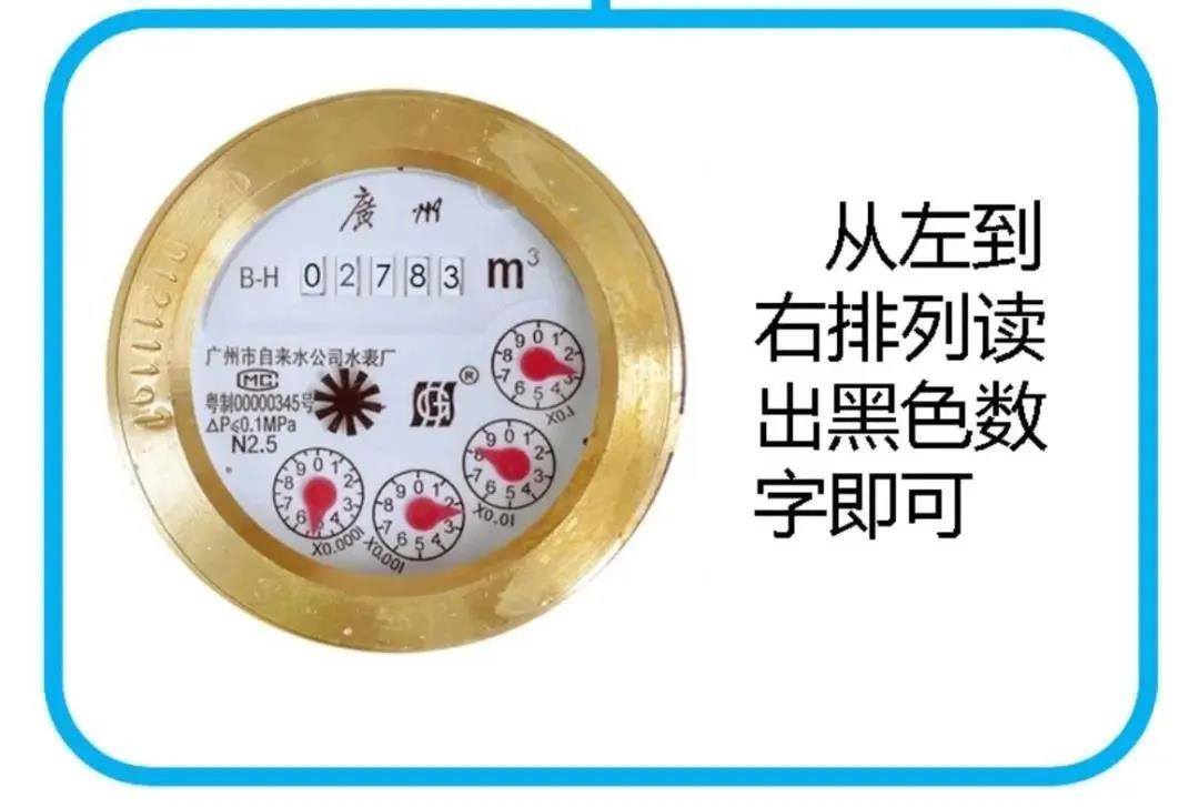 小tips:1、读表时,从水表的正面看,从高位数针轮到低位数针轮依次读数。