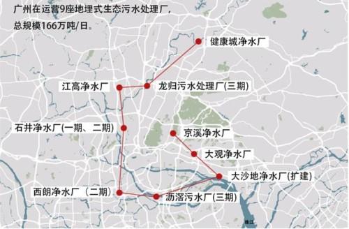 广州建成地埋式污水处理厂9座,总产能181万吨/日,呈北斗状分布于珠江两岸,被誉为“地下北斗9星”。 (通讯员供图)