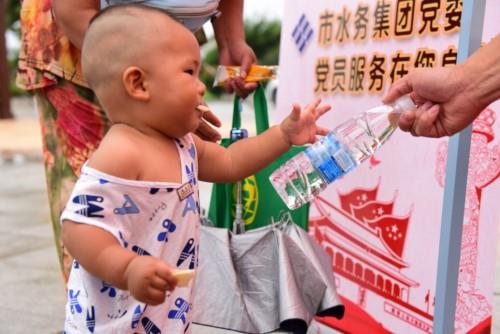 当天上午,参加公益活动的爱心企业的展位布满了张村体育公园广场,往来参加活动的爱心市民络绎不绝,威海水务集团准备了一批“十八岭”天然矿泉水,送到活动现场,免费提供给参加活动的公益单位和往来市民,在这炎热的时节为大家送来一缕清凉。