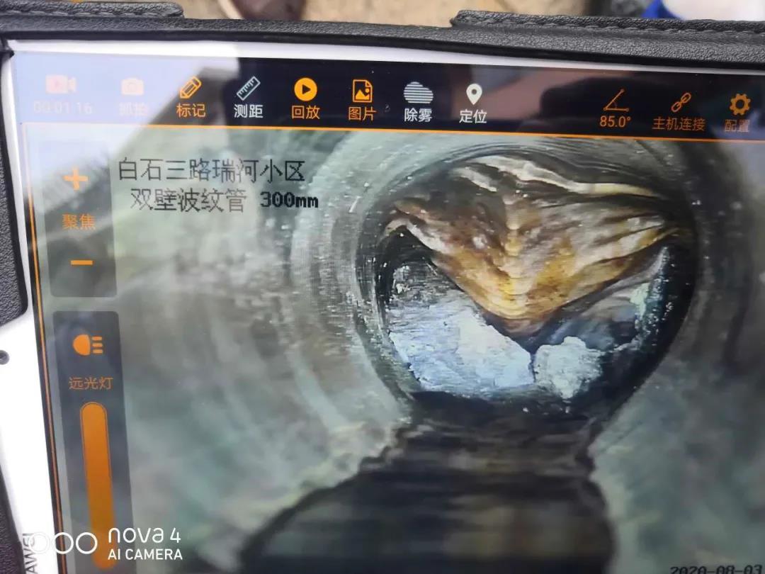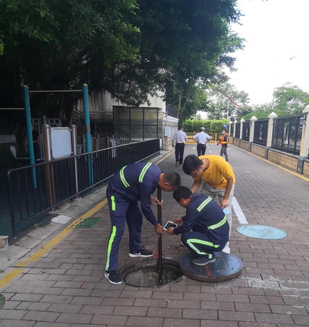 深圳水务集团南山分公司粤海水务所获悉情况后,立即派出清疏队伍到小区紧急清疏,对冒水管段进行QV检测,发现是因为排水管塌陷导致排水不畅造成污水外溢。