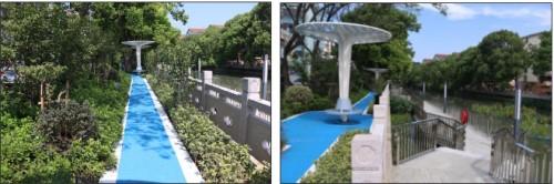 在河道内新建一处水上平台和一条亲水栈道,让居民有更好的亲水体验。