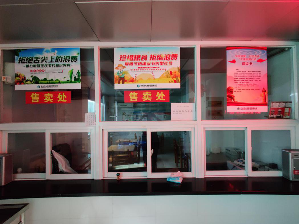 水务集团4楼食堂开展弘扬勤俭节约的中华民族传统美德,尊重劳动,珍惜粮食,做到文明用餐,杜绝浪费。食堂菜品采用分餐供应、小份自取的方式提供,在食堂的显著位置上张贴着提醒标语,“谁知盘中餐,粒粒皆辛苦”等标语时刻提醒着水务人要爱惜粮食。