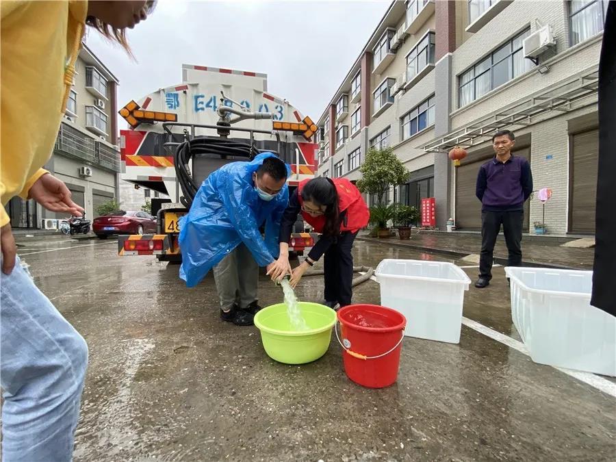 总公司在头笔双龙机电小区、中笔还建小区、许家店小区设立三个临时供水点,协调城管局安排送水车,由“宜都清泉”志愿者在三个临时供水点为市民送水,保障停水区域居民的基本生活用水。上午11点三辆送水车到达三个临时供水点,志愿者用小喇叭通知着附近居民,帮着市民放水、提水、送水……