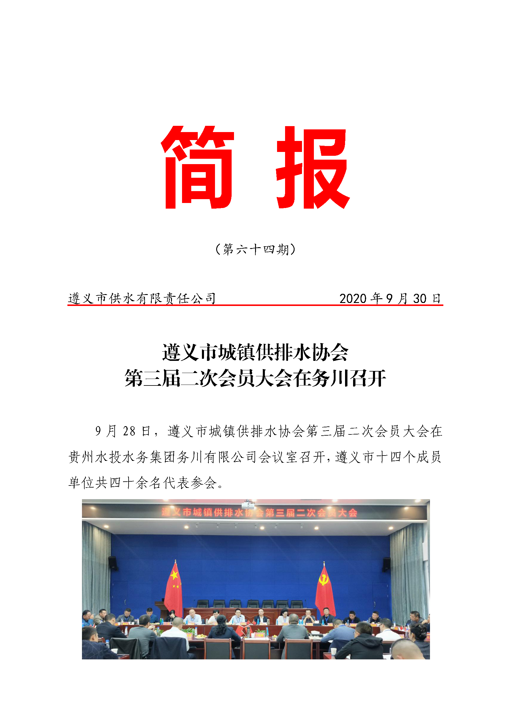 遵义市城镇供排水协会第三届二次会员大会在务川召开