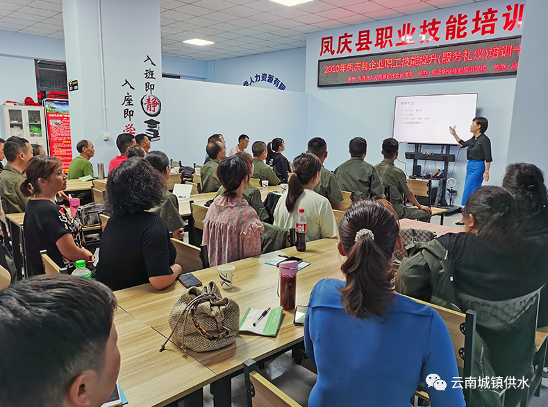 为进一步提升供水服务意识和供水服务质量,近日,凤庆县供水公司组织全体职工利用晚上下班时间到县职业技能培训中心参加职工技能提升服务礼仪培训。