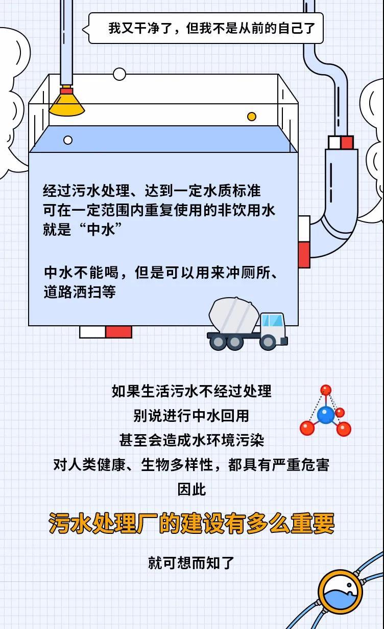 完成使命后,我也再次进行“人生”净化——经过城市生活污水处理厂的处理,达标排放,我又回归自然啦!
