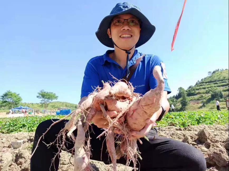 与此同时,陈诚与来自广州水投广州净水公司的许家文一起,带领村民们对土地进行集中基耕和保养,通过集约中心村竹园井一带的土地,帮扶建设“竹园井生态农业种植基地”,共同努力种植红薯,第一批种植的红薯已于2019年12月收成。项目初见成果,有效帮助贫困户树立起“自力更生、勤劳致富”的信心,进而调动村民劳作的积极性,带动村里经济发展,形成横塘村广大农户脱贫致富长效机制。