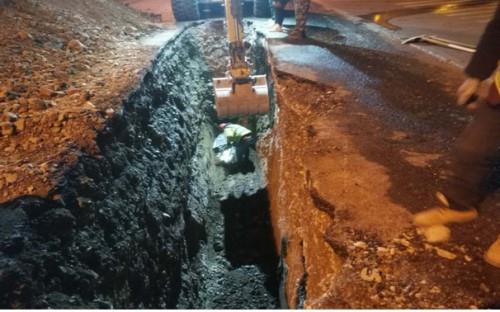 为了加快抢修进度,抢修人员顾不上寒夜里污水的冰冷与恶臭,尽管冻得瑟瑟发抖,但他们依然坚持,仅用了8小时抢修完毕,同时对作业坑进行回填并恢复、平整了路面,确保行人出行安全。