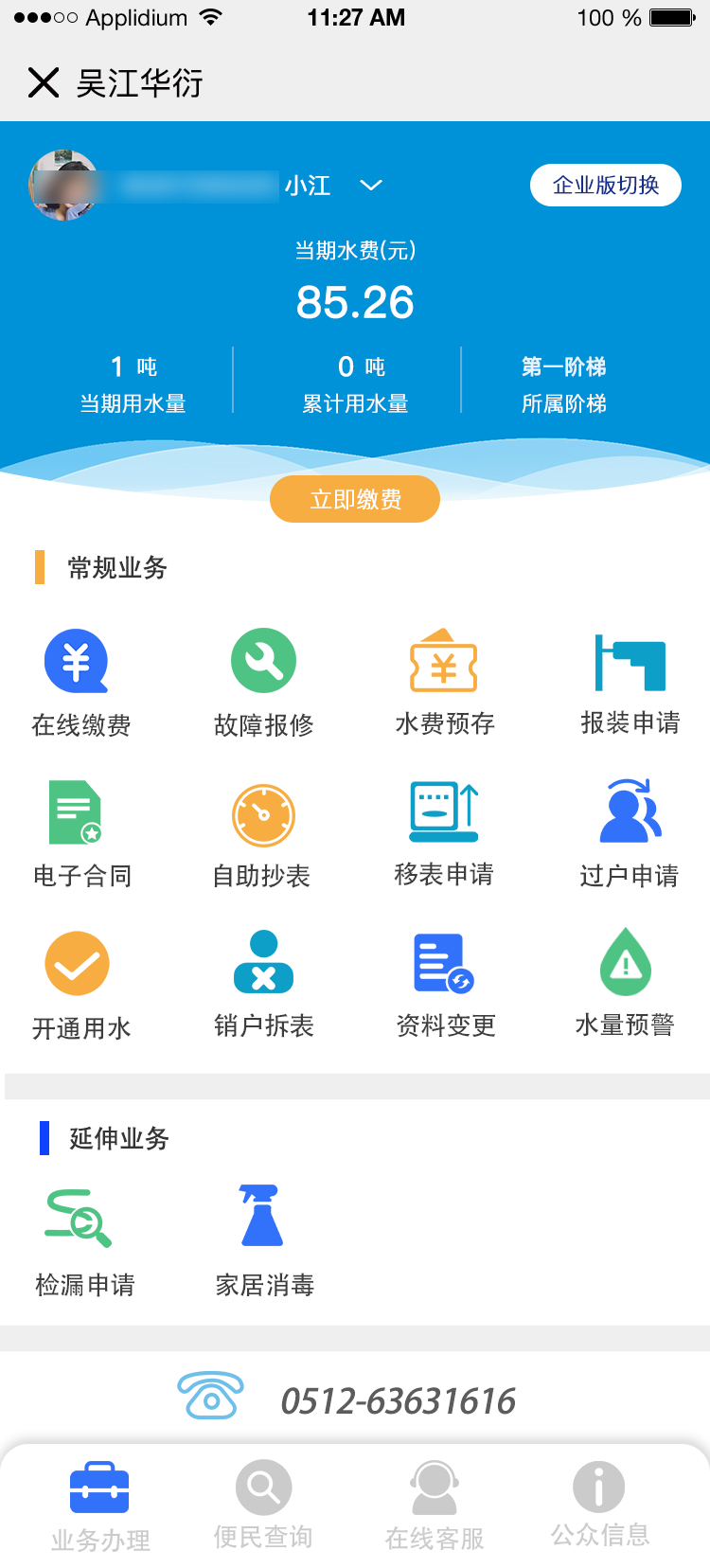 今年以来,吴江华衍水务倾力营商环境的打造,为持续优化 “供水服务” 营商环境,吴江华衍水务在“简”字上下功夫,让用户“少跑腿”,数据“多跑路”,全力开展【掌上营业厅】建设工作,目前已完成【掌上营业厅】升级2.0计划!