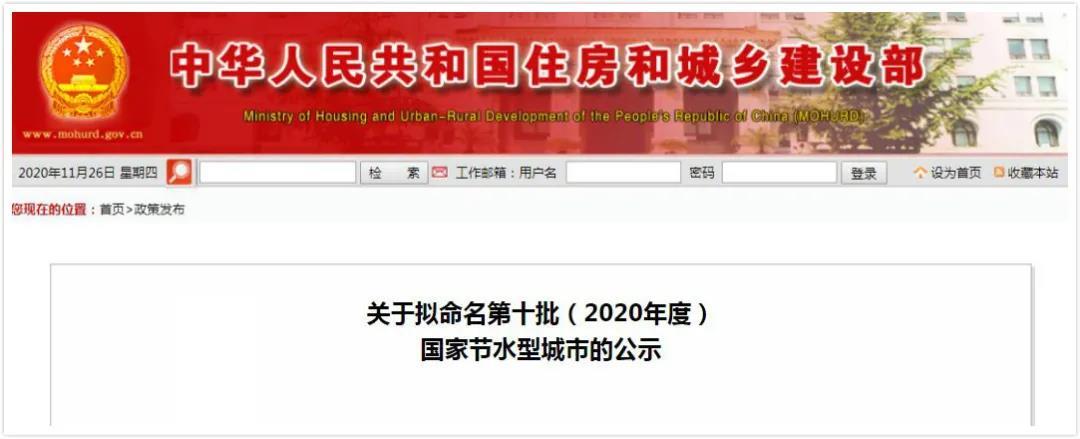 住房和城乡建设部公示拟命名第十批国家节水型城市名单