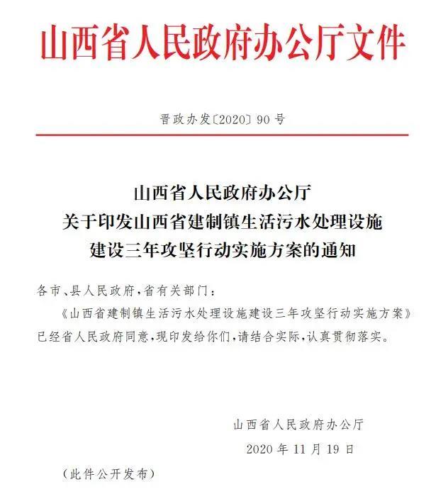 山西省建制镇生活污水处理设施建设三年攻坚行动实施方案