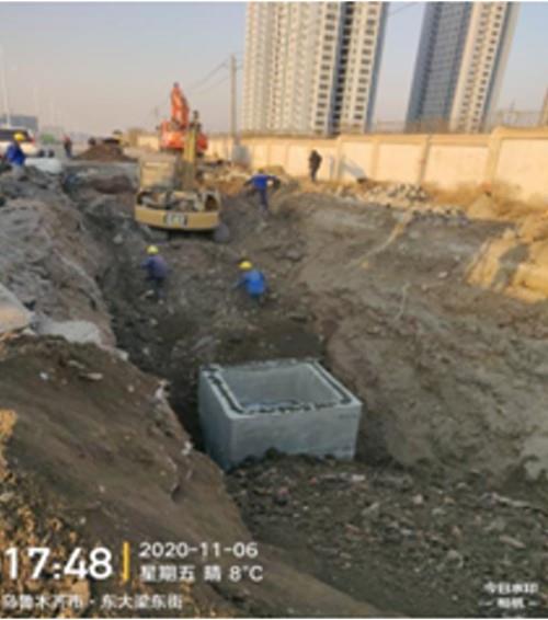 乌鲁木齐市东大梁片区排水工程,涉及“香悦湾”“和顺花园三期”及“栋梁医学观察点”等四个住宅小区和单位,约计2万多居民生活生产污水排放。该片区因无与市政排水管网连接的排水管道,主要以“化粪池”形式接收污水,居民小区及周边空气弥漫着污水臭味。今年5月中旬,乌鲁木齐水业建投有限公司开始进行该项目施工,因交通压力、地面环境条件及疫情防控等原因,管径800毫米、全长1620米的项目,地面开挖385米、“地下顶管”施工1235米。看似长度只有1公里多,但管道沟槽挖深达8米,有二层楼的深度,且道路施工位置狭窄、沟槽边坡系数小、极易发生塌方等安全隐患,安全责任十分大。