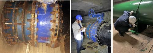 2019年,再次巡检时发现钢管及钢制支架均出现了较为严重的腐蚀,分析原因主要为:管廊投料孔大多数位于绿化带下,部分投料孔的渗水滴至管顶造成锈蚀;管廊内局部低凹处存在淹积水,长期浸泡管道;管廊内密闭潮湿的特点等。经请第三方专业检测机构鉴定,发现有约18000余平方米的自来水钢管及钢制支架外防腐层脱离,局部出现锈蚀,影响到自来水钢管及钢制支架的使用寿命,对供水安全造成隐患。