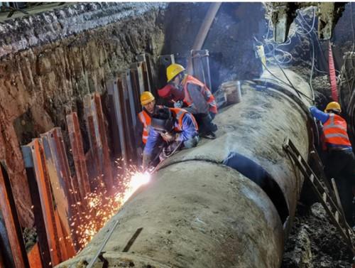 该段管道总长虽只短短1.8公里,但两点之间却遥遥相望,正如潜山路原水管建设以来,一路攻坚克难、披荆斩棘。4月18日,在克服疫情防控各项困难的基础上,项目紧锣密鼓开工。汛情期间,项目组与天气抢时间,全员加速保工期。由于工程位于政务核心地区交通主干道,沿线涉及地铁、箱涵、热力、电力、燃气等众多复杂因素,好比在城市供水动脉上进行“心脏搭桥手术”,施工难度大,影响范围广。226个日日夜夜,他们用恒心与毅力将沿途“拦路虎”一个个拿下,抓细节、建精品,始终保持着高标准、严要求,力争打造百年精品民生工程。