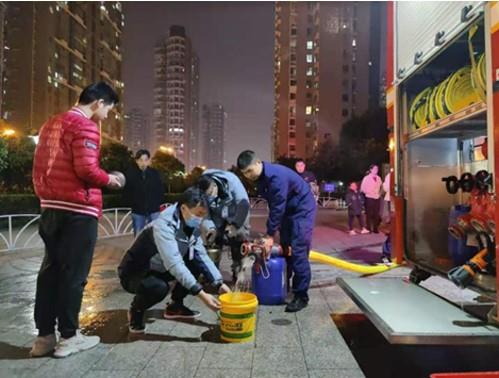 除前方施工现场外,还有阀门维保、水质检测、应急送水等近百人在后方默默保障着施工的顺利进行,积极协调消防、城管局等相关单位配合,出动22台送水车,先后为2万户居民送去近700吨用水,解决用户的用水需求。