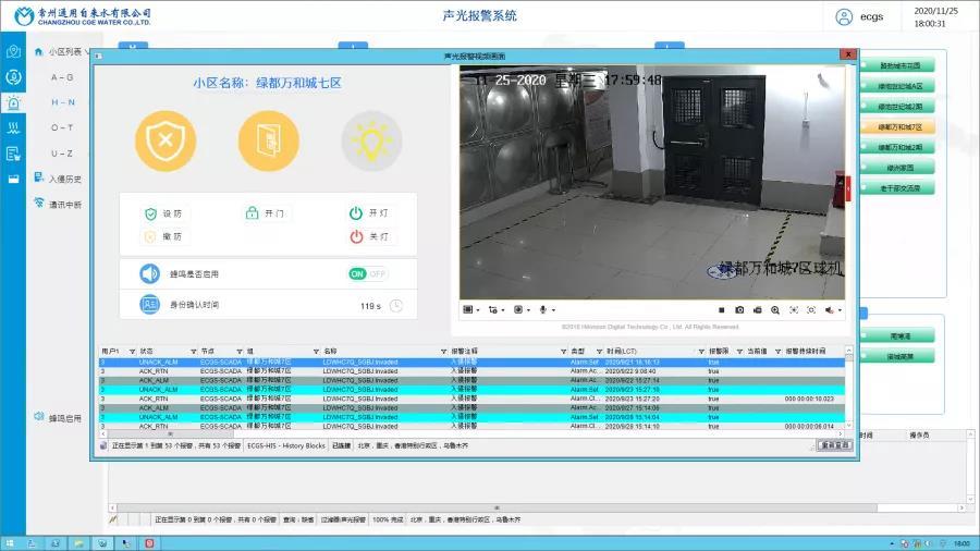 二次供水泵房声光报警系统远程控制界面