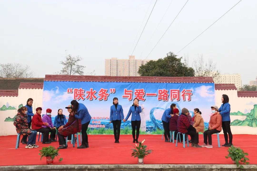 亲不亲,故乡人。美不美,家乡水。11月26日,在激情澎湃的《水上天下》开场音乐中,体验店举办的“陕水务:与爱一路同行”主题文艺演出活动,在兴平市西城办南汤台村拉开了序幕,歌伴舞《感恩的心》、女声合唱《爱的奉献》让台下的父老乡亲感受到水务人的多才多艺和故乡情怀;诗朗诵《常怀一颗感恩的心》让人们又沉浸在感恩父母亲情的感动中;为老人捶捶肩、揉揉背,陪老人拉拉话,水务人的真情就像冬日暖阳温暖着在场老人的心,也提醒儿女们常回家看看。当南维娅搀扶老人们下台时,一位老人拉着她的手激动地说:“不用不用,看我娃演出穿的这么单薄,手冷的,让姨给我娃把手暖暖。”