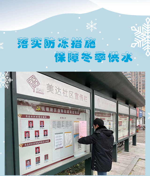 为做好全面防寒抗冻的准备,杭州水务组成了324人的常备抢修队伍,储备铝箔橡塑保温管8430米,水表17272只;同时,市水务集团党团员志愿者及全体干部员工随时待命,做好全员投入防寒抗冻工作的准备,切实保障供水管网运行安全,保障本市冬季安全供水工作。