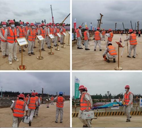 演练背景为2020年12月26日9点10分,因现场+23—+15土方开挖过程中未及时完成喷锚作业,导致土方坍塌,掩埋1名现场作业工人,现场人员发现后立即上报,项目应急指挥部接到报告后,迅速启动应急响应,组织应急小组人员展开应急救援,疏散警戒组做好现场人员疏导和警戒,防止无关人员进入;技术保障组对现场进行勘测,检查坍塌区域土方主体稳定性,提出救援方案;随后抢险救援组根据方案将被困人员救出,信息联络组和医疗救护组对被困人员紧急救护,并联系120将人员送往医院救治。
