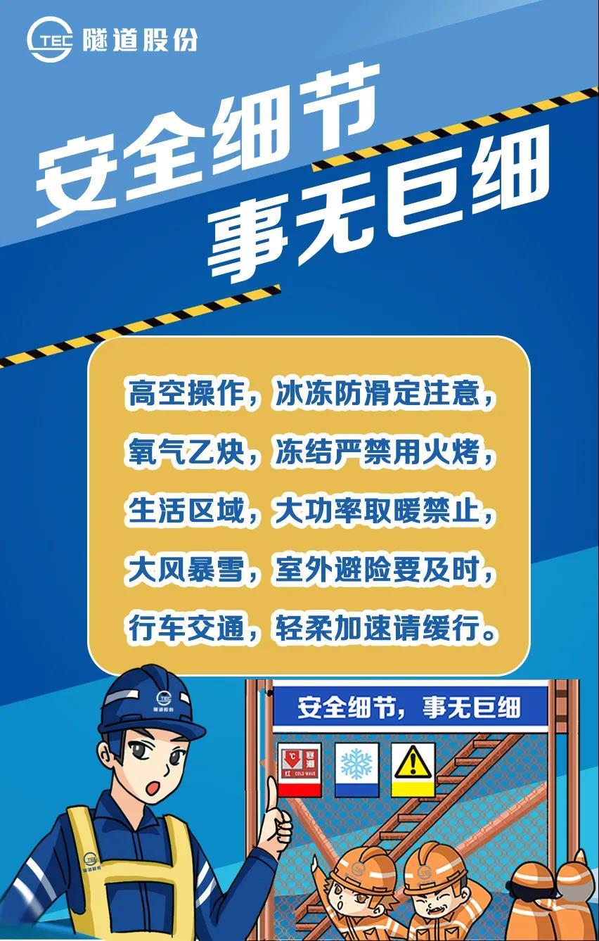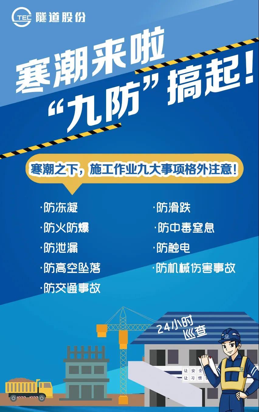 总部相关部门、各企业要对此次寒潮下的安全防范工作再提示再细化再部署,特别是要做好员工的安全保障,做好在建工程、开挖路面,道路交叉点及工地周边的防寒防滑措施,避免次生隐患。