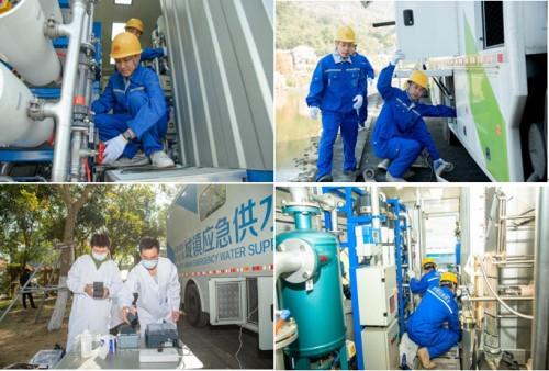本次演练模拟中山当地水源受到咸潮污染,自来水出厂水的氯化物严重超标,导致当地水司停产,造成大范围市民用水告急,请求支援。华南基地接到救援任务后,组织30人的应急队伍及应急指挥车1台,移动式应急净水车2台、水质检测车2台赶赴现场进行应急救援。本次演练为华南基地开展的首次实战演练,整个演练流程基本完整呈现了整个应急救援过程的各项操作流程,从应急队伍集结、出发物资清点、车辆到达后驻车到净水车制水流程、检测车采样检测等各项操作都进行了实际操作,并记录实际需时,为华南基地应急管理工作留下了宝贵的实操数据、经验。整个演练过程,参演人员各司其职、分工协作,演练从到达水源地到移动式应急净水车成功制水向市民提供应急供水,需时不超过一个小时(需时视各救援水源地实际情况作调整),圆满完成了预定的各项演练任务。