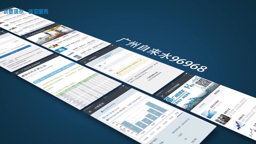 近年来,广州供水不断推进服务智能化,推行“互联网+线上办理”服务方式,打造“指尖上的水管家”服务模式。2020年,从供水热线96968到“广州自来水96968”微信公众号,广州供水通过官网、微信公众号、政务服务网等多种渠道,提供水费查缴、自报行度、用水申请、报漏报修等18项线上服务,实现供水服务“零跑路”,让用户享受“网上办、手机办、微信办”等“非直接接触”用水业务办理服务。