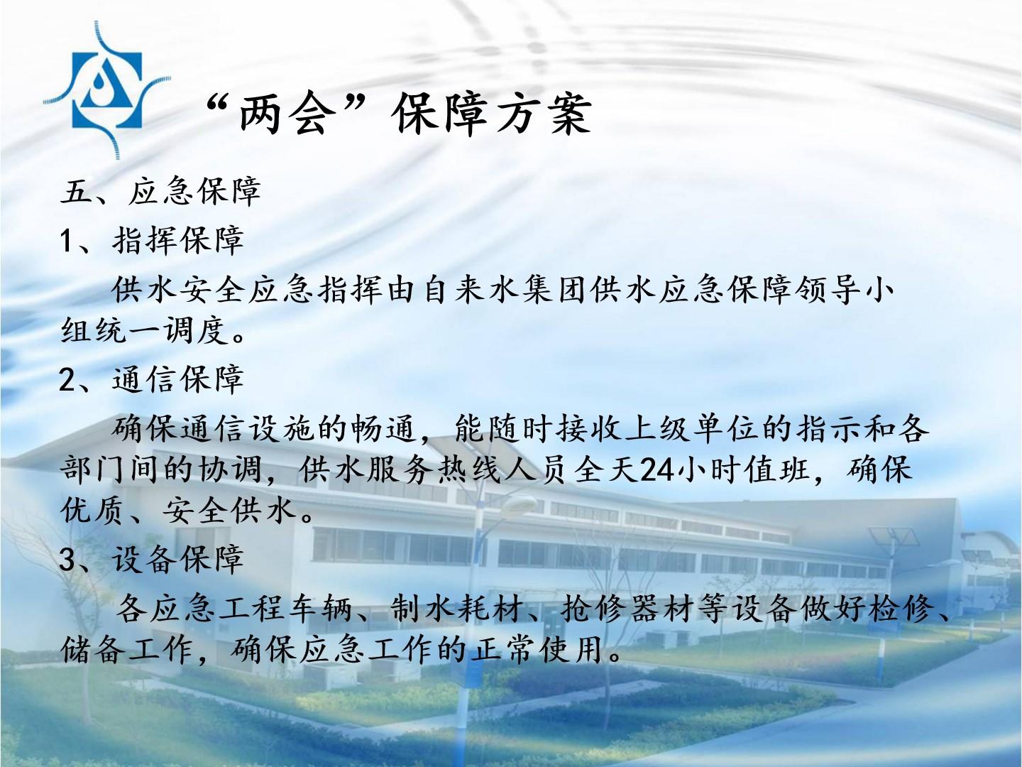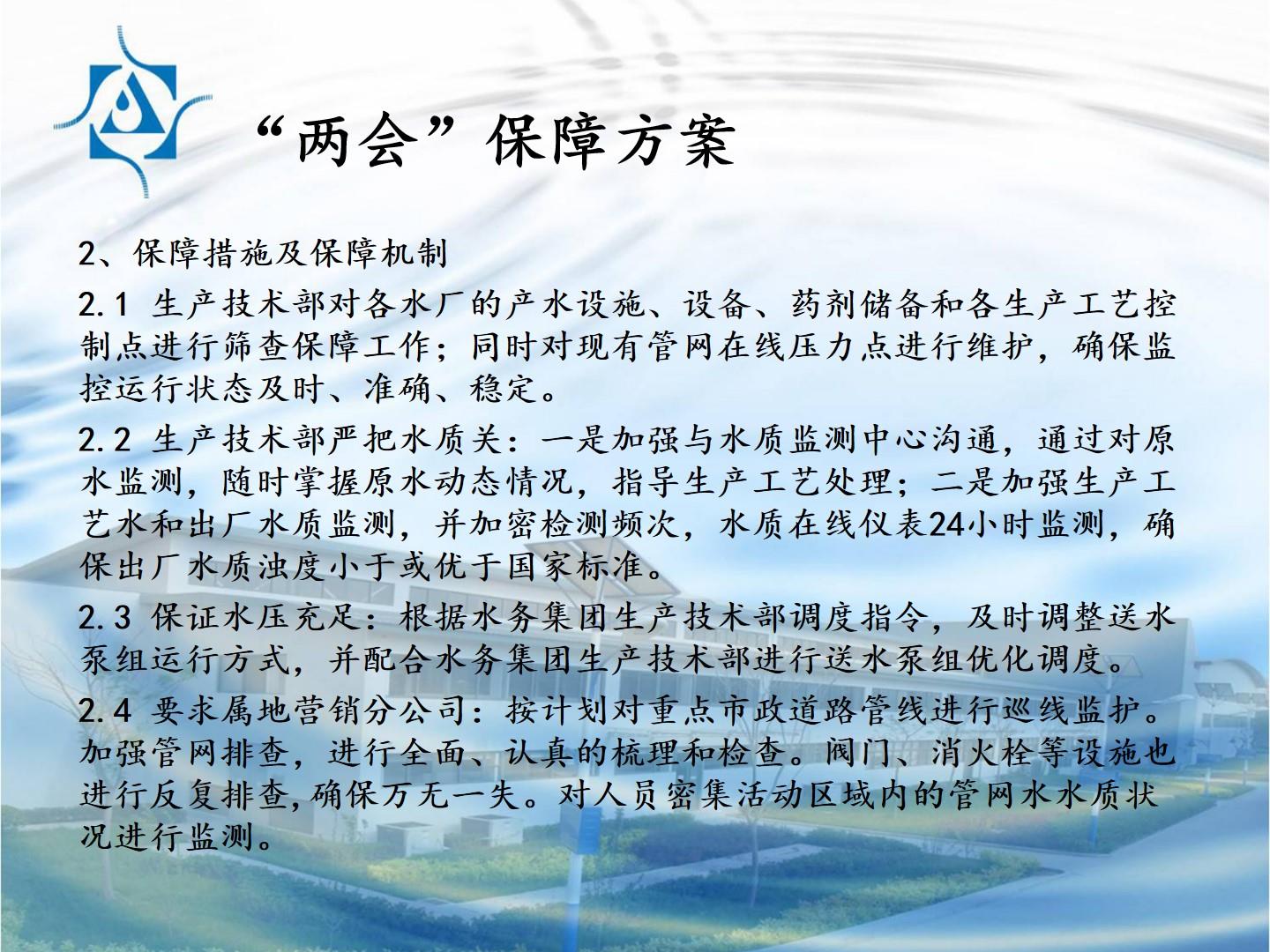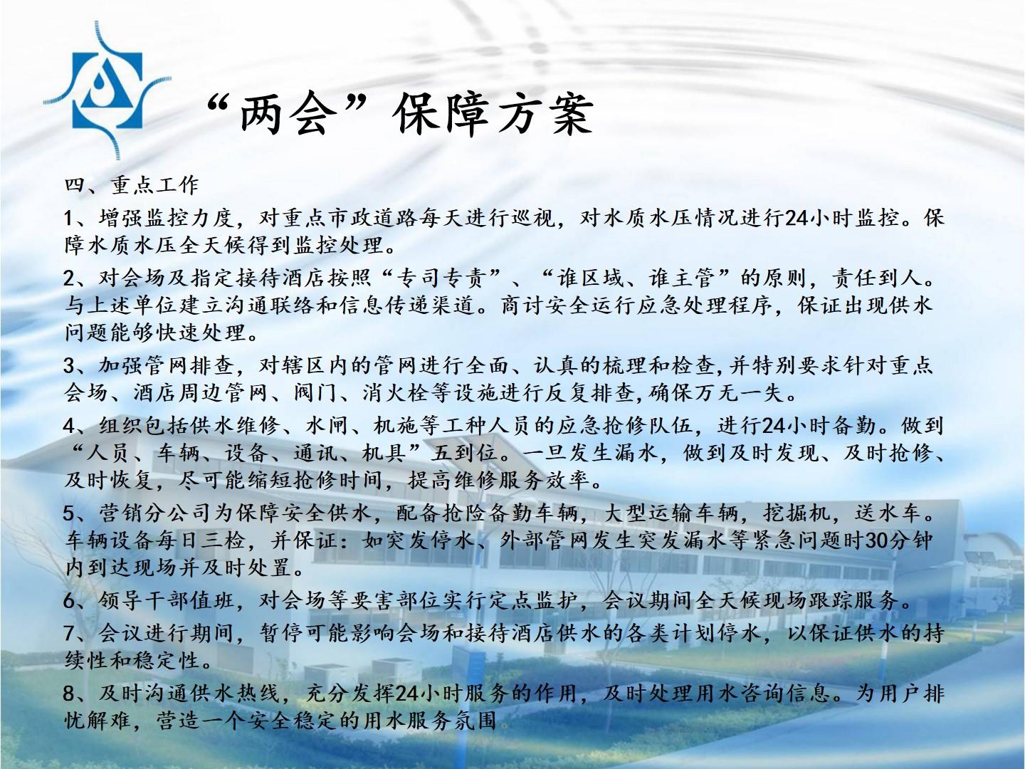 “两会”供水安全保障方案