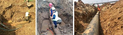 为了尽快恢复供水,抢修人员连续作战,克服环境与体力的重重困难,历经10个小时,完成了管道修复任务并全面恢复供水。