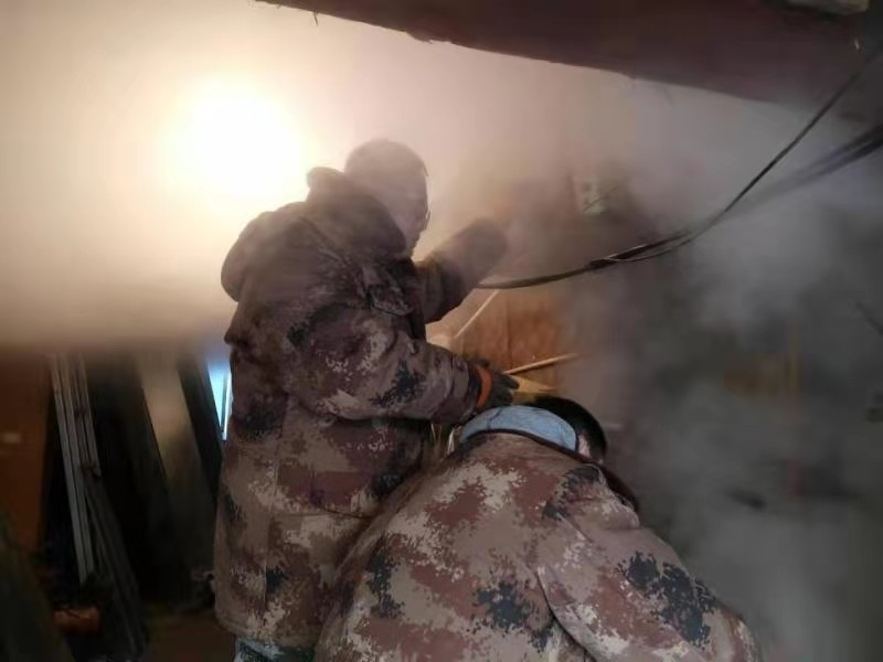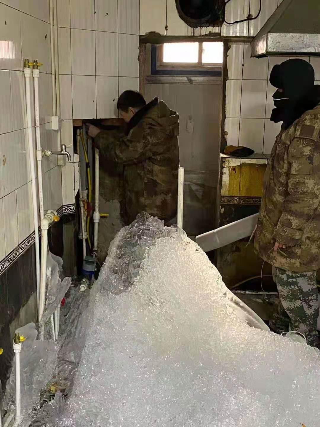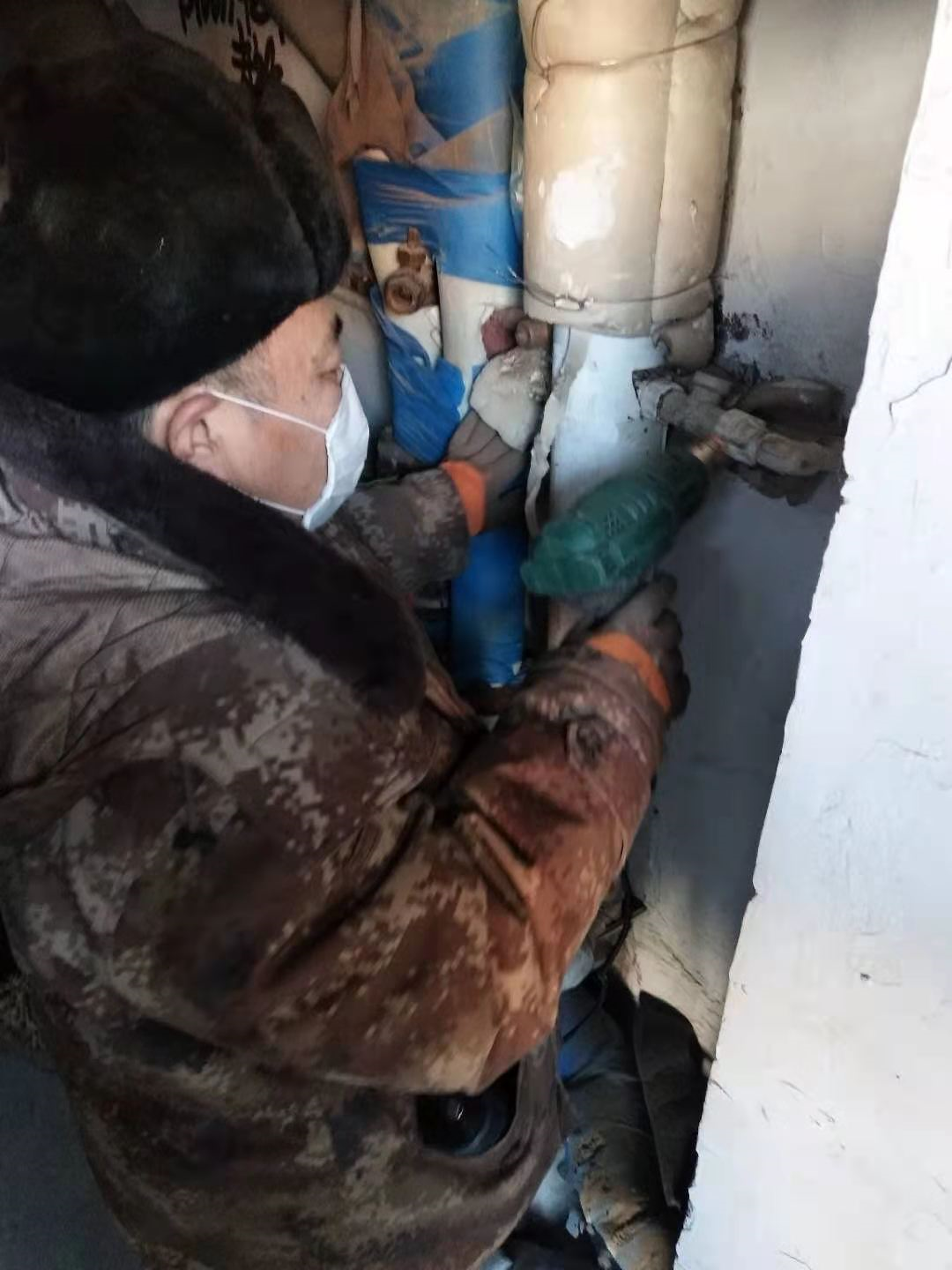 东洲、和泰地区部分老旧小区因入住率低,楼体保温效果差,导致冻堵情况严重。分公司维修员工介绍:“有时候一个楼道只有一、两户用户居住,因楼下无人,造成整个单元立厅管全部结冰,我们只能联系社区和派出所,找到房主后逐一入户解冻。例如南花园北机电小区一居民楼,1个楼道只有第六层有人居住,我们6名同志、4把温枪、两把电镐、一台电锅炉,解冻工作历时20多个小时就是为了让六楼居民能正常用水,解冻后看到水流出的瞬间,感觉所有辛苦都值了!”