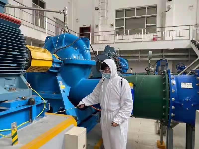 经开供水公司地表水厂职工对车间设备进行消毒