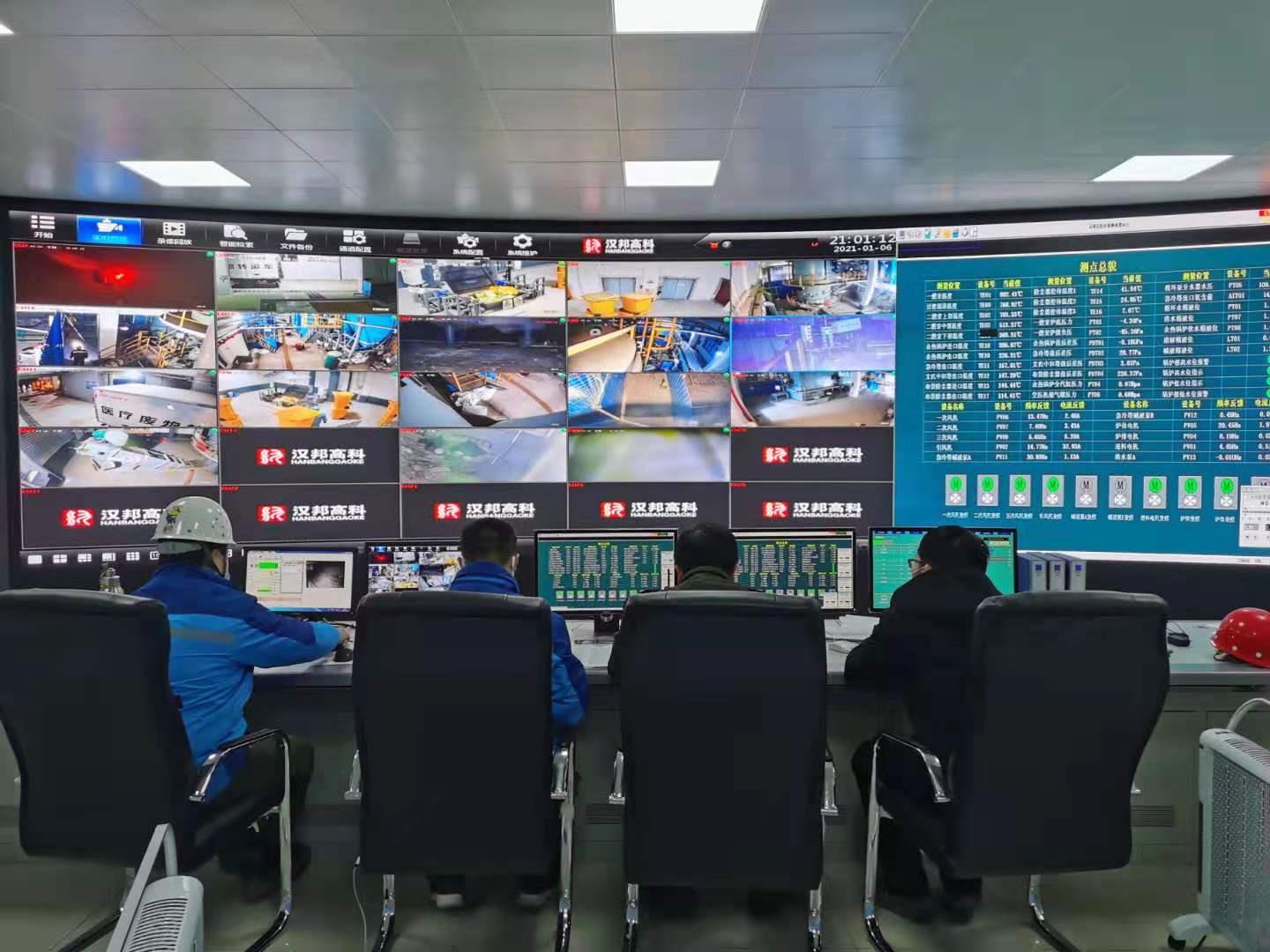 医废公司职工在中控室监测处置工作