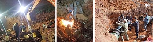 在公司党支部、董事会的带领下,施工技术人员冒严寒、战冰冻,在预定的停水时间内克服重重困难,连夜奋战14个小时,提前完成了管道连接并顺利通水,努力做到保供水、惠民生,促成了高速公路连接线建设的顺利进行。