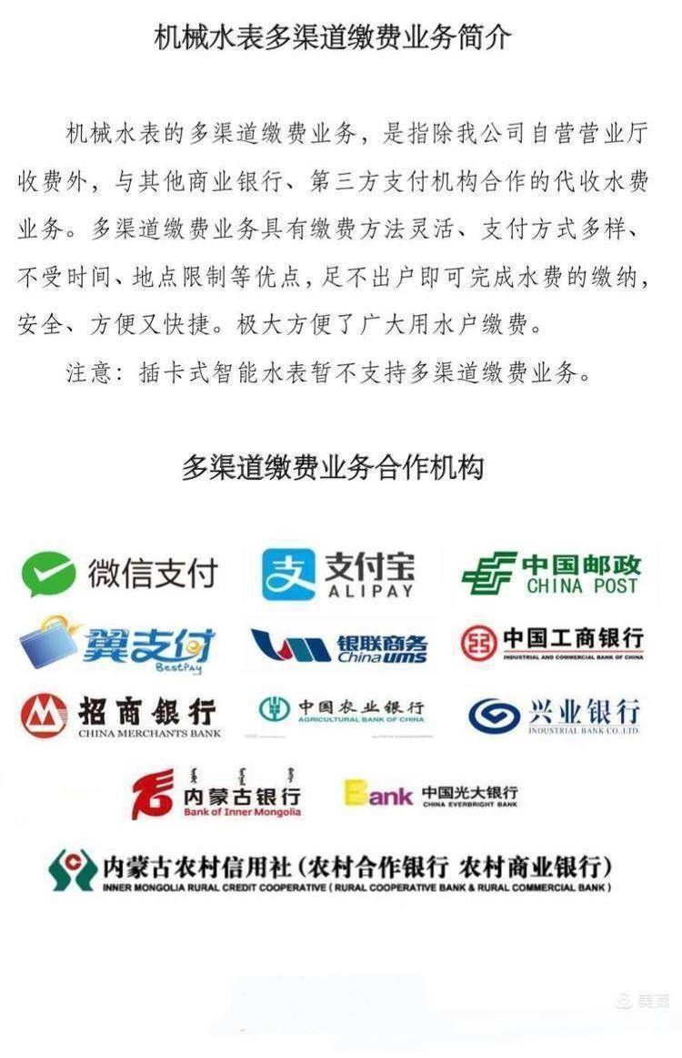 春节将至,为保障假期期间居民可以安心用水,呼和浩特市供排水有限责任公司春节期间服务“不打烊”,对外营业窗口正常营业,为全市智能IC卡表用户办理充值缴费业务,机械表用户可以通过第三方缴费平台进行缴费,同时供排水公司多部热线电话正常为用户提供业务咨询以及售后维修。IC卡表用户如果您家水表突然由于欠费停水,您可以用供水卡(或其他卡片)插一下水表,可以继续使用1吨备用水,然后及时选择我公司附近营业厅进行充值。