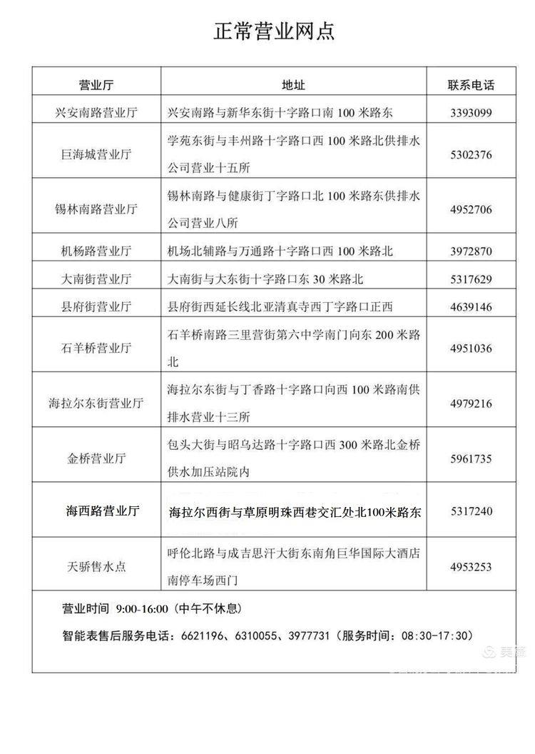 呼和浩特市供排水有限责任公司春节假期服务“不打烊”