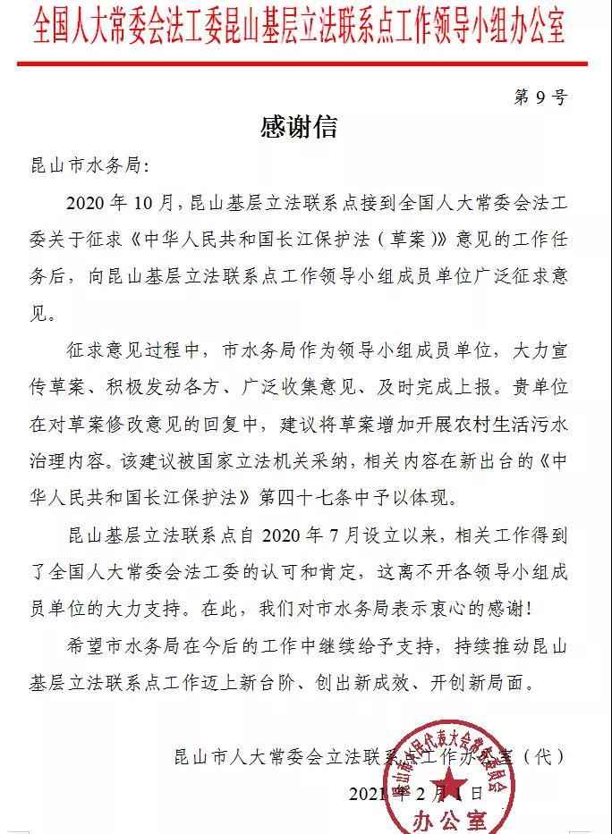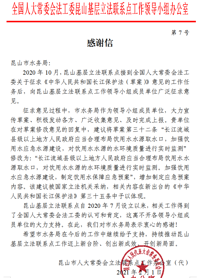 感谢我局对国家立法基层联系点工作给予的大力支持