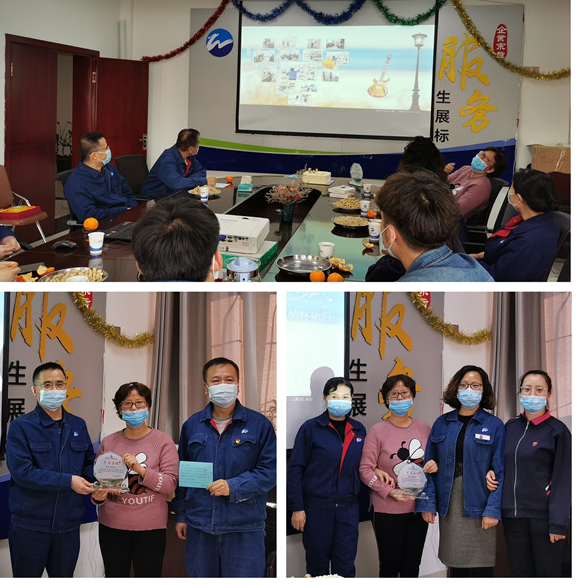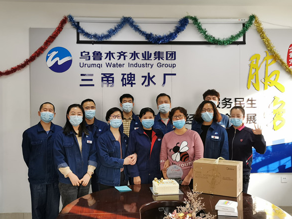 乌鲁木齐水业集团有限公司三甬碑水厂厂长赵雨新对朱冬梅十多年如一日地扎根制水一线,无私奉献的精神表示衷心感谢,对她辛勤的劳动、认真的工作热情以及任劳任怨的工作态度给予了高度赞扬。他说道:“伴随着三甬碑水厂的成长,涌现出许多优秀的员工,他们多年来与水厂风雨同舟,工作兢兢业业、无私奉献,以他们的忠诚和才智为咱们水厂的发展做出了卓越的贡献,他们是水厂发展的推动者与见证者,是水厂最宝贵的财富。”随后厂长赵雨新和副厂长刘炳义亲自为朱冬梅送上纪念奖牌和蛋糕,以及水厂精心挑选的光荣退休纪念品,运行一部主管李莉代表全体员工为她送上退休祝辞。当听着李主管亲切的呼唤朱冬梅为姐姐的时候,不舍和感动的眼泪在所有人的眼眶里打转,她们一起经历过数十次的供水高峰,一起战胜过来势汹汹的新冠疫情,同事情、战友情、姐妹情在退休后依旧温暖着水业员工的心。