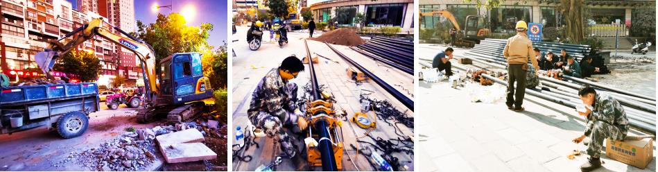 为了确保让小区业主尽快正常用水,他们加班加点,中午都不回家吃饭,而是席地就餐。工程机械设备正在紧张施工,大家全力投入管道安装作业中,用辛勤的劳动和汗水奏响节日的欢歌。