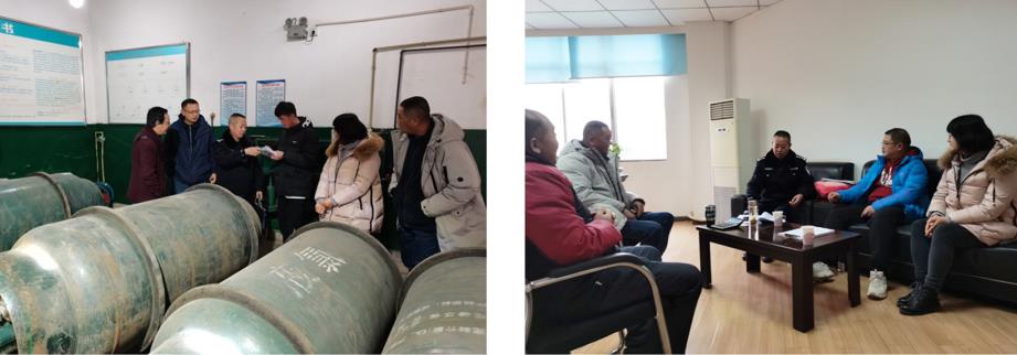 首先,治安大队听取了公司张副总对公司经营现状及安防情况的介绍,并共同签订了2021年度《曲靖市公安局危险化学品使用单位安全管理责任书》。随后来到公司所属第二自来水厂对厂区人脸识别装置、视频监控系统、安全保卫及防范应急机制进行现场查看,其中重点检查了危险化学品-液氯的使用贮存情况及相关台账记录。治安大队表示,公司保卫防范及应急处置措施完善,液氯使用贮存程序规范,同时也提出了几点建议:一是继续做好新冠肺炎疫情防控工作和安全生产管控工作,加强安全隐患排查和员工的安全教育,确保供水安全;二是要严格执行领导干部带班、重要岗位24小时值班制度,对重点部位、重点时段要加强安全监督检查,落实安全管控措施,时刻保持应急状态,建立与社区警务室、派出所的治安联动机制。