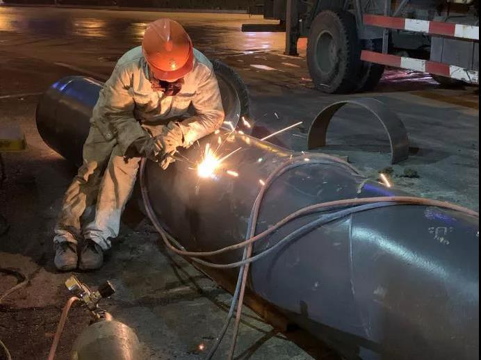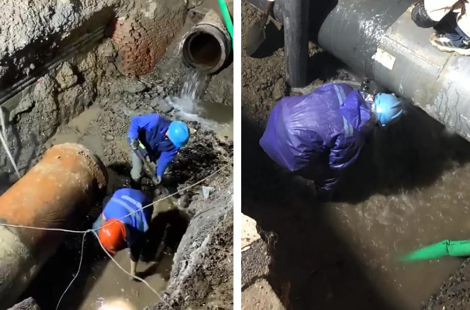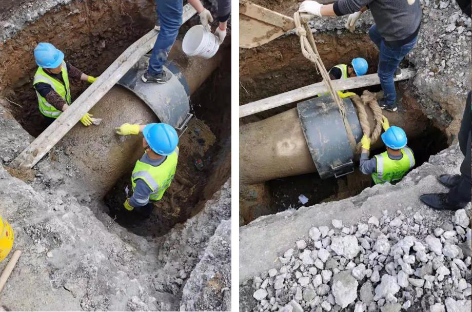 花山湾漏损情况相对较轻,通过安装钢制哈夫节对漏损位置进行焊接,于当日14时左右完成抢修。