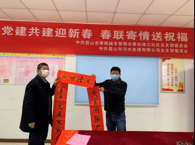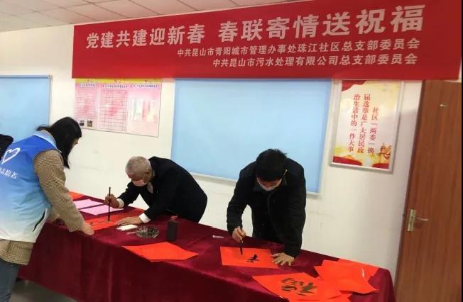 2月4日,污水处理公司党总支联合珠江社区党总支共同开展“党建共建迎新春 春联寄情送祝福”春节主题活动,为社区居民送去新春的问候和节日的祝福。