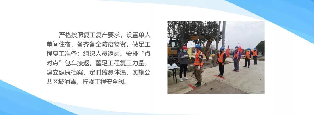 一场“战”疫,按下了工程建设的暂停键。把落下的进度赶回来成为水务人的必胜目标。昆山市青年文明号——琨澄建设公司项目办,严格按照复工复产要求,设置单人单间住宿、备齐备全防疫物资,做足工程复工准备;组织人员返岗、安排“点对点”包车接返,蓄足工程复工力量;建立健康档案、定时监测体温、实施公共区域消毒,拧紧工程安全阀。他们用青春淬炼岗位先锋,用奋斗书写无悔青春!