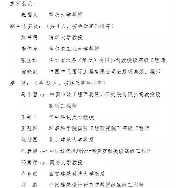 《第五届住房和城乡建设部高等教育给排水科学与工程专业评估委员会组成人员名单》