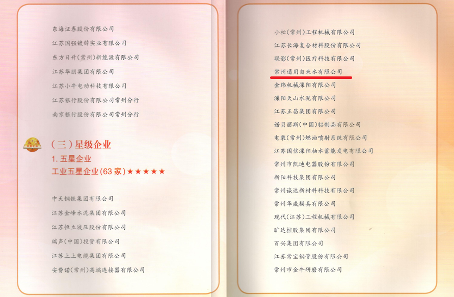 常州通用自来水有限公司获得2020年度“常州工业五星级企业”称号