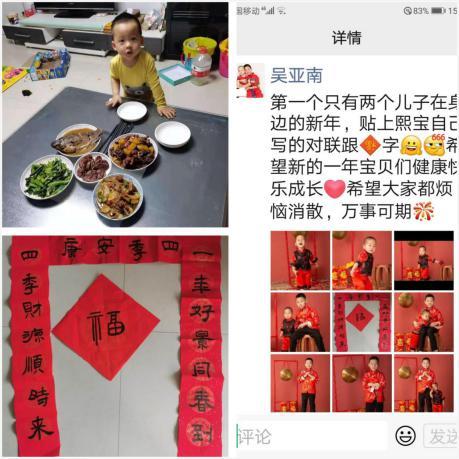“感觉今年自己长大了,成了真正的家长。”建投公司项目四部预算员吴亚楠说,自己和丈夫的父母不在乌市,往年都是到鄯善的公婆家过春节,什么都不用自己操心,今年从节前购买年货到包饺子、准备年夜饭都是自己亲力亲为,大年三十,同在建投工作的丈夫值守单位,自己与两个儿子贴春联、吃年夜饭、放鞭炮,这是一个值得记忆的春节。
