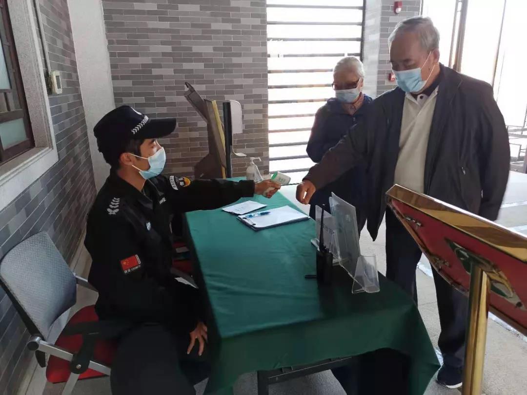 广州水博苑工作人员为进馆游客检测体温和登记信息