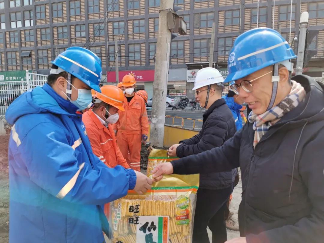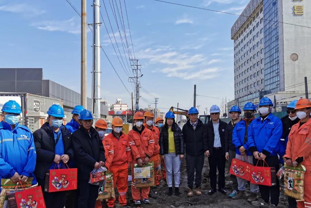 2月18日,公司党委书记、董事长钱志斌、党委副书记、纪委书记、工会主席倪成杰一行慰问了管道工程公司青浦路黄浦路高危旧管网改造项目一线职工,为坚守的建设者们送去诚挚的问候和新春的祝福。为了配合市政建设进度,同时响应“原地过年”的倡议,项目建设者放弃春节与家人团聚,坚守岗位,紧盯时间节点,在落实好疫情防控各项措施基础上,确保项目按进度有序推进。公司领导在听完项目情况后,对在春节期间坚守岗位的一线职工表示了感谢,并送上了春节祝福和慰问品。
