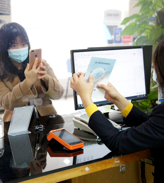 (▲供水公司员工积极推广微信小程序,方便市民“零跑动”办业务)