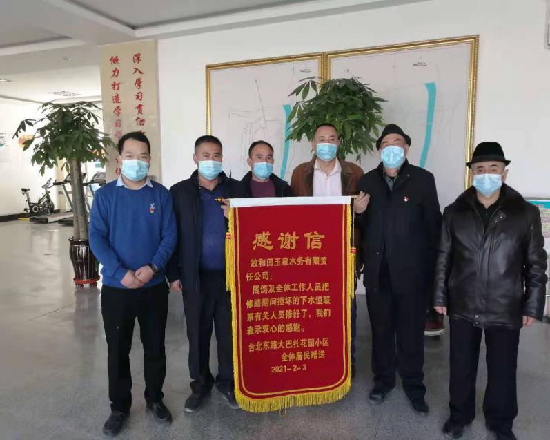 新疆和田玉泉水务有限责任公司 玉泉水务抢修管网 小区居民赠送锦旗
